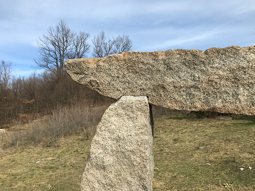 Inspired by the Buzovgrad Megalith, Constantine had an idea to build a contemporary stone gateway. Sheltering in place amidst the COVID-19 pandemic, the only help available to him were close family members such as his sister and elderly father. Constantine proceeded singly, building his own tools & equipment as needed, and relying on simple and practical ways of transporting and implementing the granite trilithon. The final sculpture is installed atop a cliff rising above the Yantra River along the town of Gabrovo and is visible from the local roads.