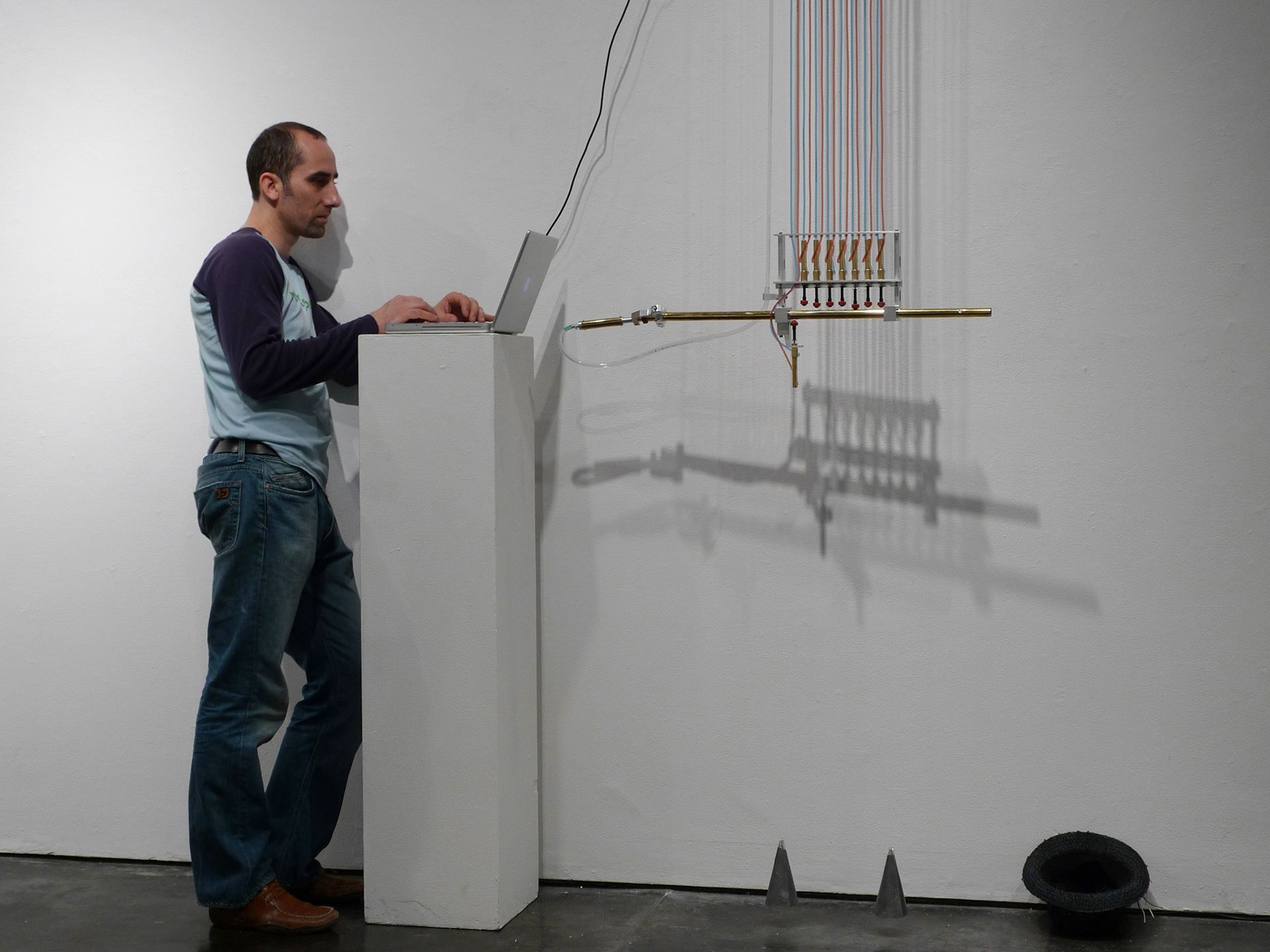 The Street Musician is a kinetic artwork based on the Balkan kaval, a simple wooden flute traditionally played by mountain shepherds. The kaval lost popularity in the 50's as the herds & shepherds disappeared due to the economic changes triggered by the heavy industrialization of Bulgaria. The Street Musician is a satirical rebirth of the kaval in the shape of a robotic sculpture, in a context as alien to its original incarnation as factory-work was to the shepherds that traditionally played it.