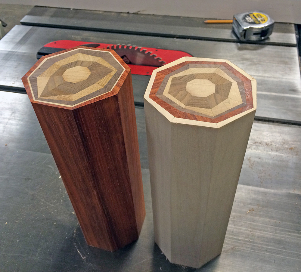 For the Octagraphs, layers of different hardwoods have been used to portray 8 years of global arms exports to developing nations. Each layer represents a country or region and each corner of the octagonal shape represents a particular year.