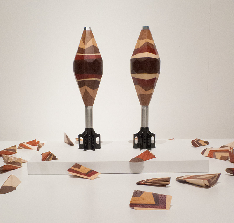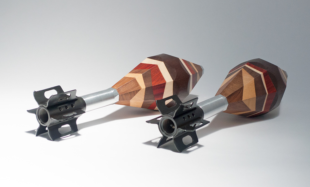 Materials: Laminated hardwoods, Aluminum, 81mm mortar tail fins